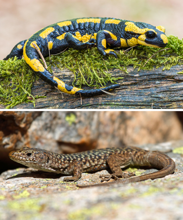Bár a szalamandrák és a gyíkok egyes fajai feltűnő hasonlóságot mutatnak, a legfontosabb különbség a kétéltűek, illetve a hüllők közé való besorolásukban rejlik. A szalamandrák kétéltűek, amelyeknek nincsenek füllyukai vagy karmai, és sima, nedves bőrük van. Ezzel szemben a gyíkok hüllők, testüket durva pikkelyek borítják.