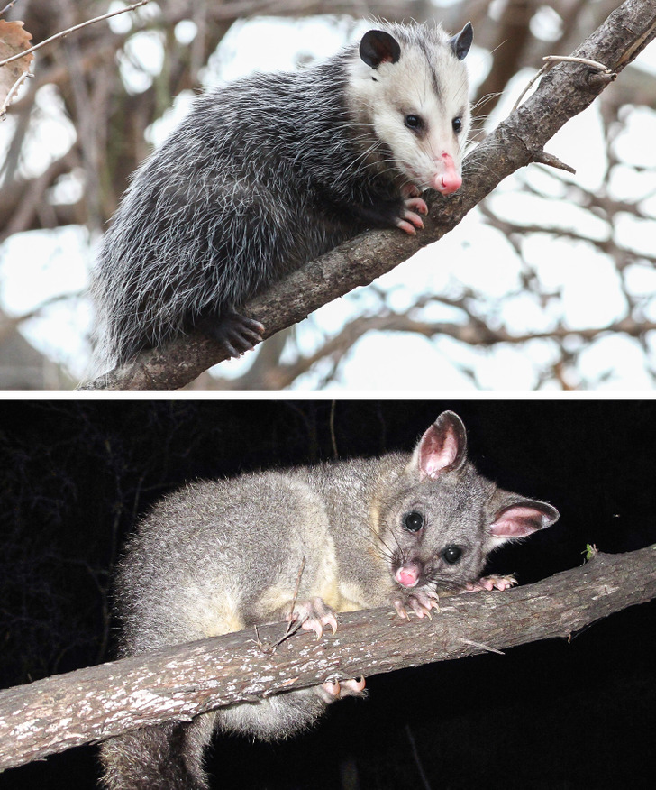 Annak ellenére, hogy az oposszumok és az posszumok hasonló nevűek és erszényesek közé sorolhatók, több szempontból is jelentősen különböznek egymástól. Az oposszumok Észak-Amerikában őshonosak, szürkésbarna bundájuk, fehér ormányuk és csupasz, patkányszerű farkuk van, amely segíti őket az ágakba való kapaszkodásban. Ezzel szemben az posszumok Ausztráliában élnek, és ezüstszürkétől a barnáig, feketéig vagy krémszínűig terjedő színűek. Sötét ormányuk és bolyhos farkuk van.
