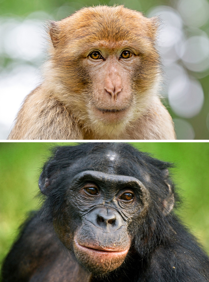 Bár mind a majmok, mind a emberszabásúak a főemlősök családjába tartoznak, számos markáns különbséget mutatnak. A legszembetűnőbb különbség a farkukban van, mivel a legtöbb majomnak van farka, míg az emberszabásúaknak nincs. Emellett fizikai jellemzőik is jelentősen eltérnek egymástól. A emberszabású majmok jóval nagyobbak, mint a közönséges majmok, széles mellkassal, széles vállakkal és hosszú karokkal rendelkeznek.