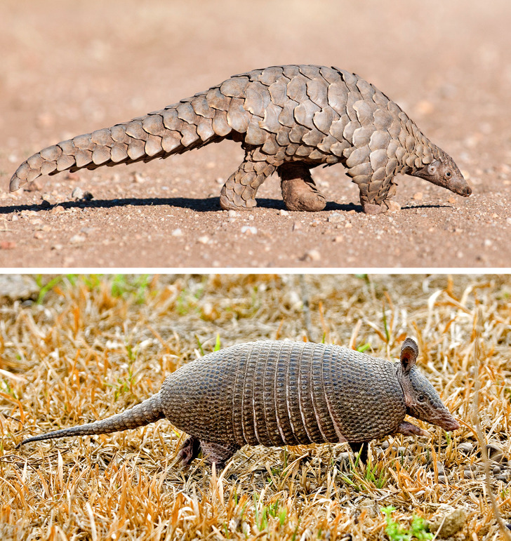 Ezeket az állatokat gyakran összetévesztik hasonló testpáncéljuk miatt, de közelebbről megvizsgálva a különbségek nyilvánvalóvá válnak. A pangolinok nagy pikkelyekkel rendelkeznek, amelyek páncéllemezekre hasonlítanak, míg a karvalyok testét bőrszerű lemezek borítják. Ezenkívül a seregélyeknek feltűnően hegyes fülei vannak, míg a pangolinnak kicsi, kerek fülei, vagy akár csak füllyukai, látható fülek nélkül.