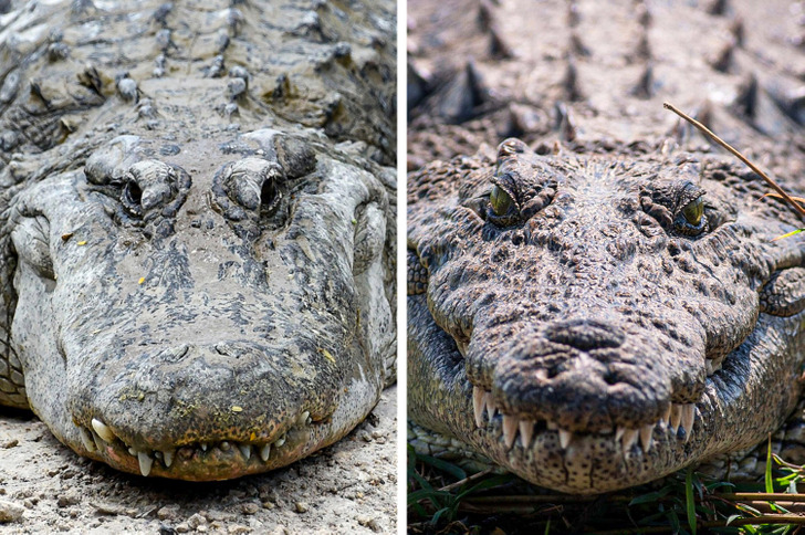 Hosszú evolúciós múltjuk ellenére a krokodilok és az aligátorok határozott különbségeket mutatnak. Az egyik szembetűnő különbség az ormányuk alakja. Az aligátoroknak széles, U alakú ormányuk van, míg a krokodiloknak keskenyebb, V alakú ormányuk. A másik szembetűnő különbség a fogazatuk. Amikor az aligátorok becsukják a szájukat, csak a felső fogaik láthatók, mivel az alsó fogaik a felső állkapocs mélyedéseibe illeszkednek. Ezzel szemben a krokodiloknál a felső és az alsó fogak akkor is láthatóak, amikor a szájuk zárva van, ami jellegzetes „fogas” vigyort eredményez.
