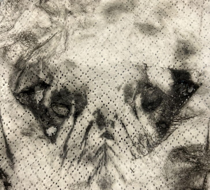 „A papírtörlőmön megjelent egy mopsz arca.”