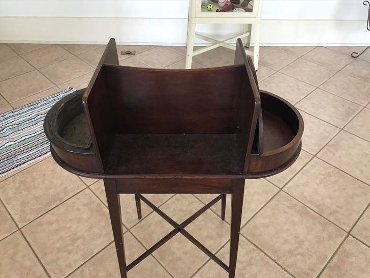 „Úgy néz ki, mint egy régi dohányzó asztal. A réz hamutartó, és az ívelt terület palackok számára alkalmas.”