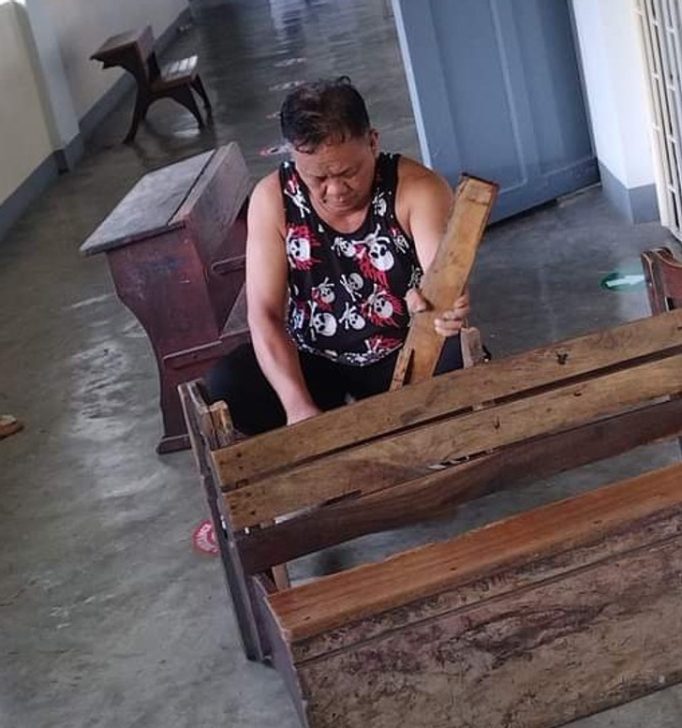„Nagybátyám a szabadidejében a helyi iskola székeit, padjait javítgatja.”