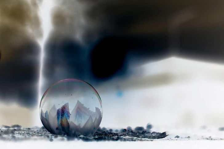 Egy szappanbuborék idegen bolygóra hasonlít, ha makroobjektíven keresztül nézed