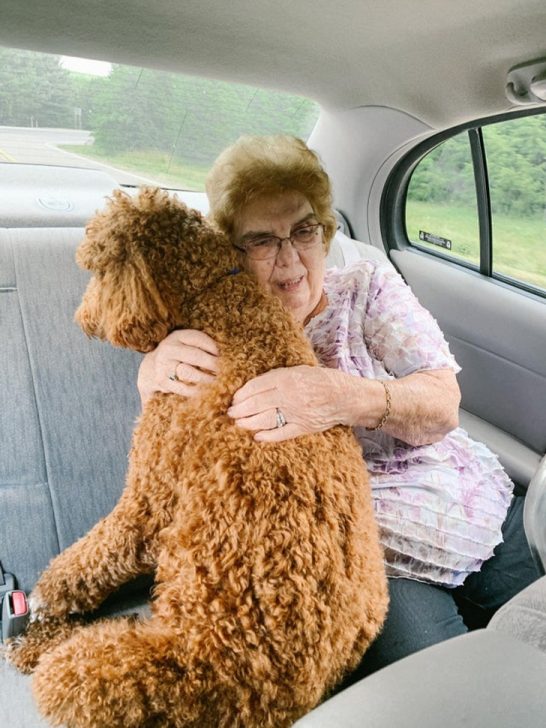 „A kutyánk fél az autókban, ezért nagymama mellé ült.”