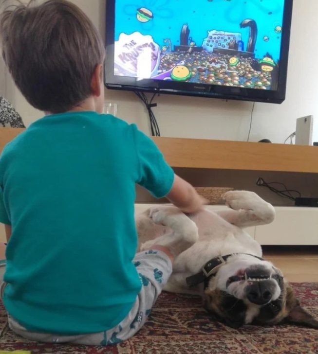 „Az első reggel, miután örökbe fogadtuk. Jól beilleszkedett.”