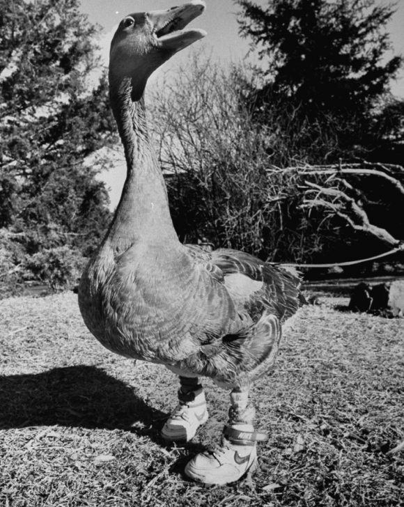 Andy lábatlan liba volt. A gazdája egyedi cipőt készített neki, hogy járni tudjon.