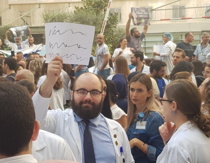 9. Egy orvosok által szervezett sztrájkon az egyik résztvevő egy transzparenst magasba tartva ismertette a a követeléseit. A poén kedvéért természetesen olvashatatlanul.