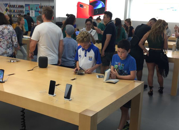 Könyvet olvasott egy Apple boltban.