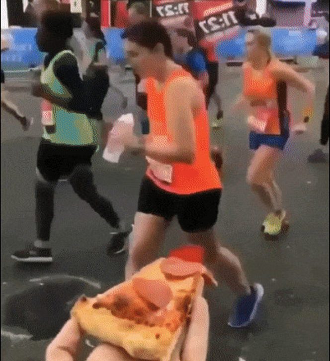 Az emberek harapnivalókat adnak a maraton résztvevőinek.