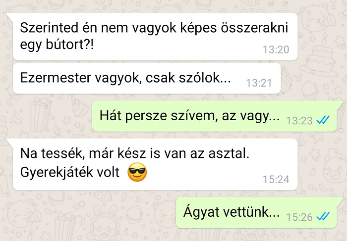 2. A klasszikus kettősség: „Felnőtt férfi vagyok, ne parancsolj nekem!” — majd következik a „Hol a kocsikulcs? Hol a pénztárcám? Hol a telefonom? Kimosnál egy rendes alsót holnapra?”