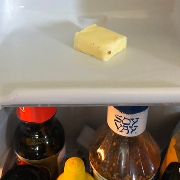 9. A vaj tárolásának újragondolása: így tárolja a partnerem a vajat a hűtőben. Nem csoda, hogy nem akartam vele megkenni a szendvicsemet.