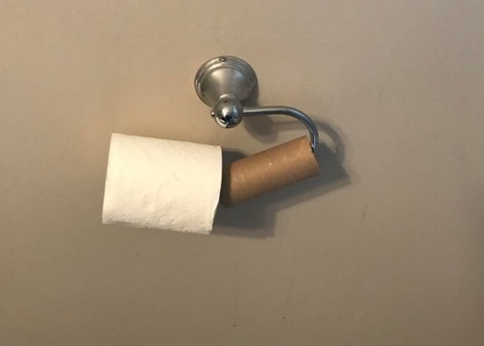 7. Az üres wc-papír cseréje sosem tartott sokáig az ő szemszögéből — egyszerűen így helyezi fel az új gurigát. (Megmagyarázhatatlan.)