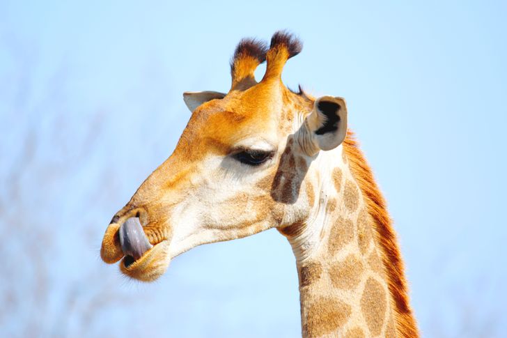 A zsiráfok a nyelvükkel tisztítják orrukat..