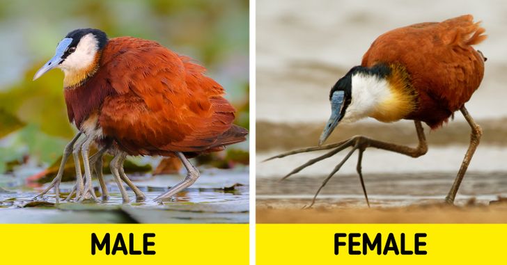 Veszély esetén az afrikai jacana a tollazata alá rejti a fiókáit