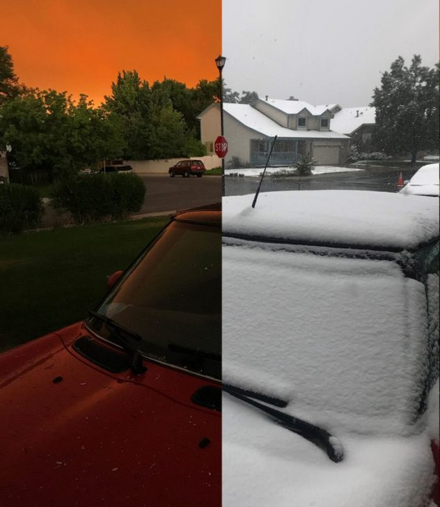 A coloradói Fort Collins-ban készült képek, egy nap különbséggel.