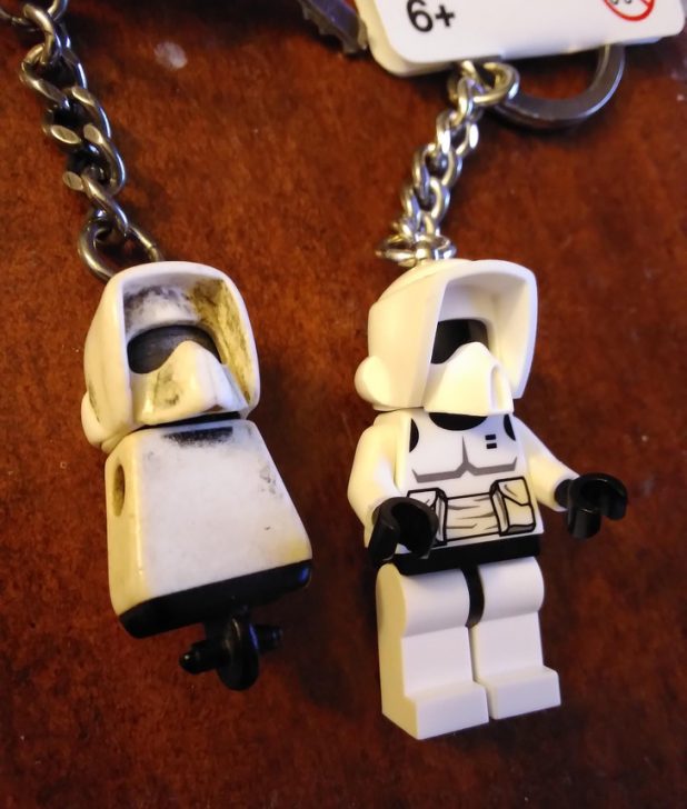 ” jobb oldalon egy LEGO-kulcstartó látható, amit évek óta használok, a baloldali pedig teljesen új darab.”