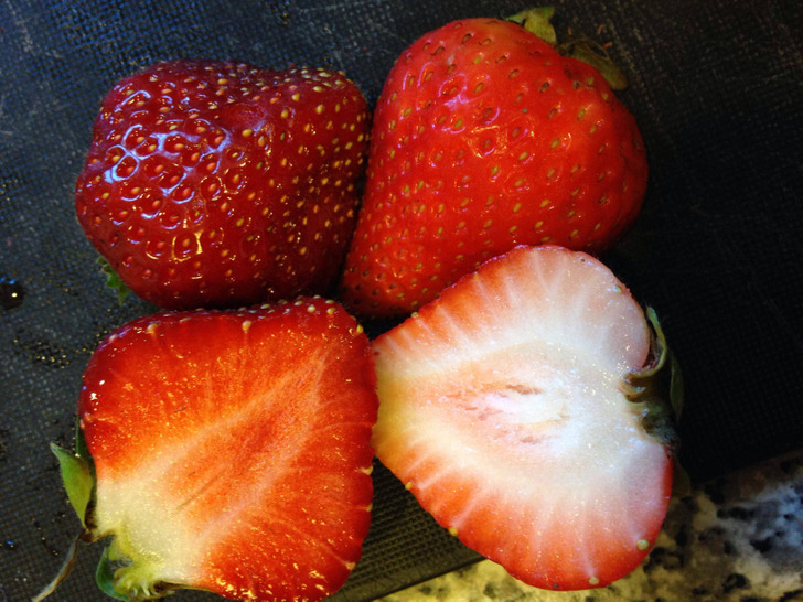 Egy gazdaságban termesztett eper (balra) egy szupermarketben vásárolthoz (jobbra) képest.