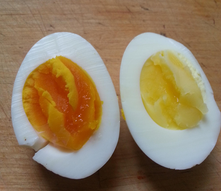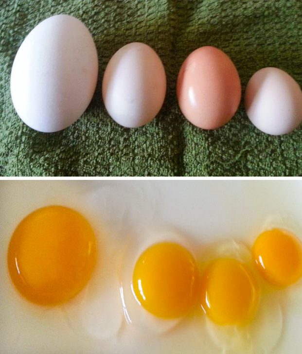 Egy szabadtartású tyúk tojása egy szokásos bolti tojáshoz képest.