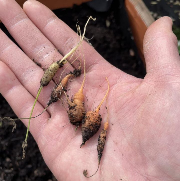 „Először ültettünk zöldségeket. Íme a csodás répatermésünk”