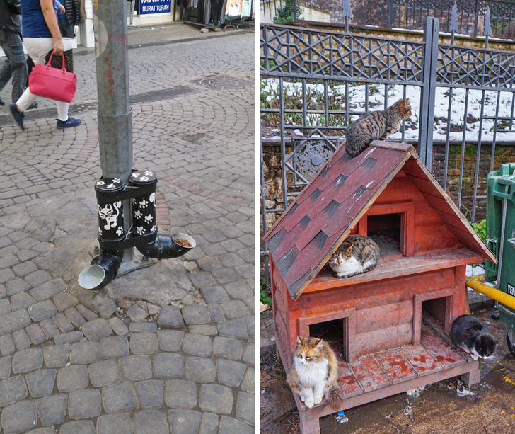ek „díszítik” a városban élő utcai macskák otthonait.