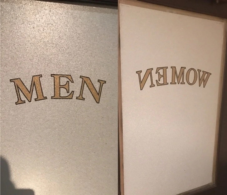 „Kívülről a „férfiak”, míg belülről a „nők” felirat látható. Cseles!”