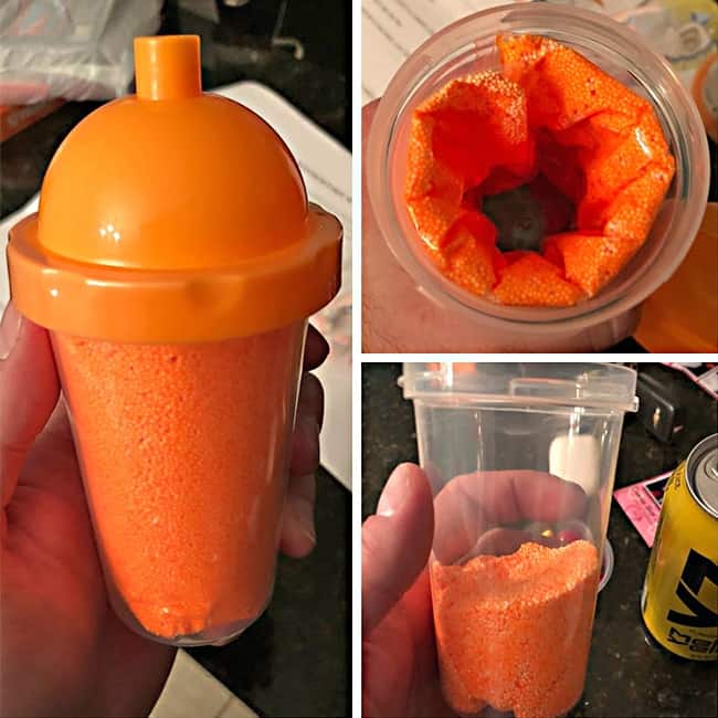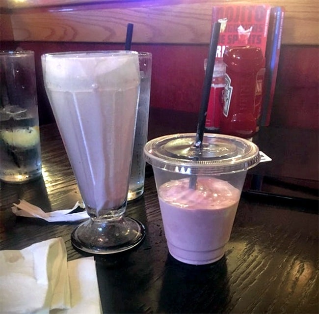 Egy pohár turmix, átöntve egy kisebb pohárba..
