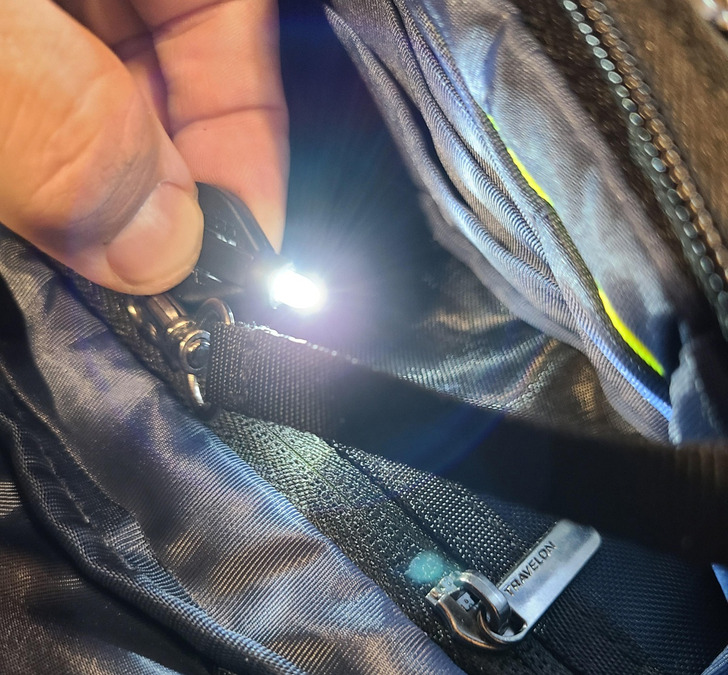 „Az új övtáskámban van egy kis LED, hogy sötétben is megtaláld a cuccokat.”