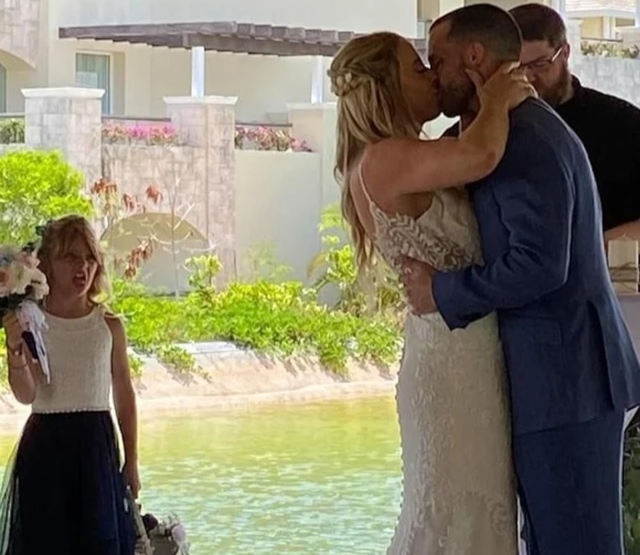 4. Ezen a fotón az első hitvesi csókunk van megörökítve, na meg az unokahúgom reakciója, aki szemmel láthatóan nem volt elragadtatva a látványtól.