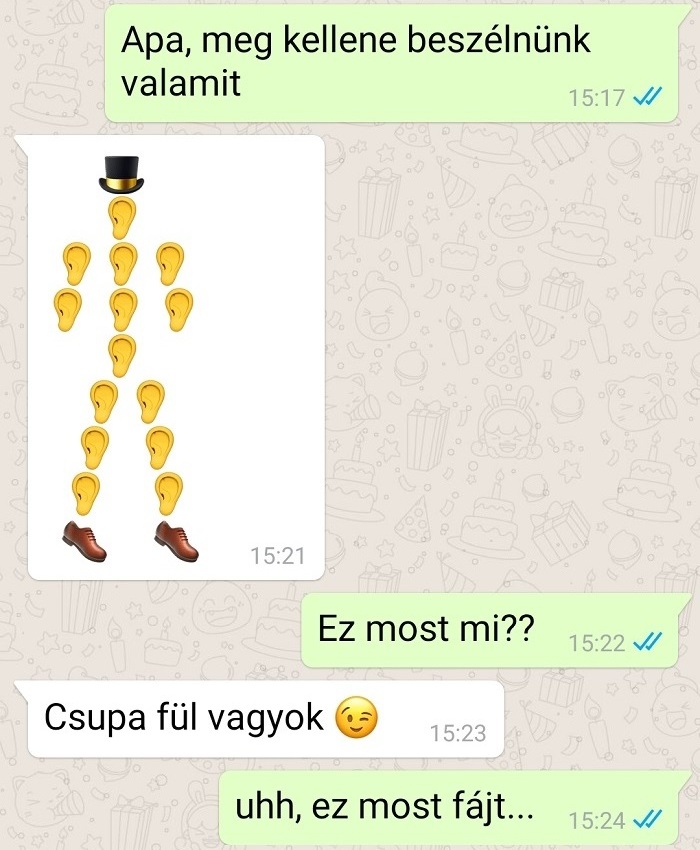2. Életem első pizzarendelésénél bemutatkoztam: „Jó estét, én pizza vagyok.” A futár csak ennyit felelt: „Akkor kérem, csomagolja be magát, mondom, hova kell kiszállítani.”