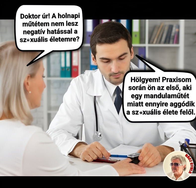 – Nos uram, önt meg kell műteni! – mondja a doki.