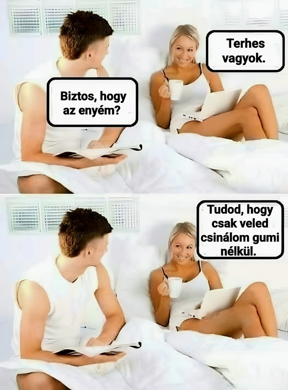 – Tudom, tudom. – feleli a doktor – Megnyugodhat, a sz3x nem veszélyes egészen a terhesség utolsó hónapjáig.