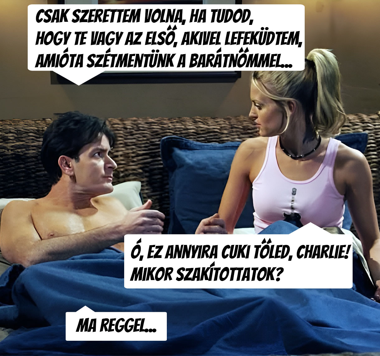A férj megenyhülve hallja, hogy a felesége hangja szinte elolvad. Ekkor odavágja a csattanót: