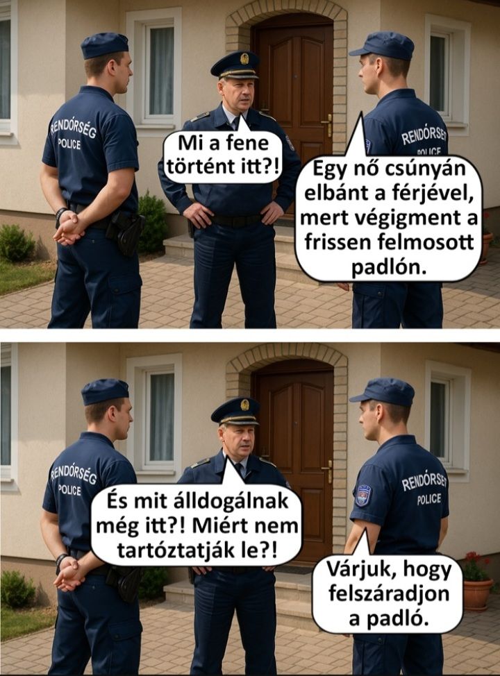 Két rendőr sétál a Dunaparton. Egyszer csak hallják, hogy valaki kiabál: