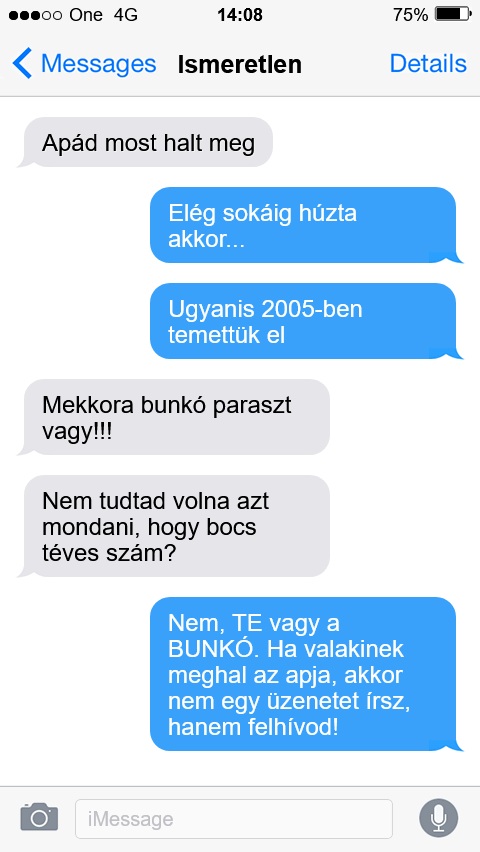 – Figyelj, egyezzünk meg valamiben! Aki előbb meghal, az valahogy tudatja a másikkal, kinek volt igaza.