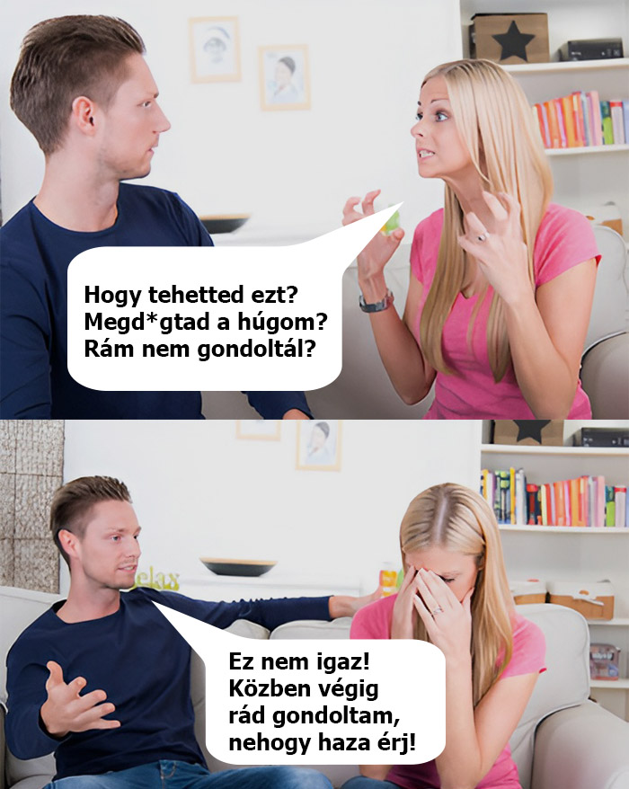 A férj megcsalja a feleségét a titkárnőjével, de észreveszi, hogy a vállán egy harapásnyom maradt.