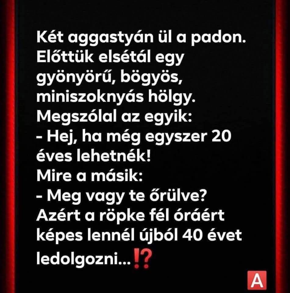 – Hajjaj, de még mennyit! – feleli ismét a másik öreg.Aztán arra jön egy vörös.