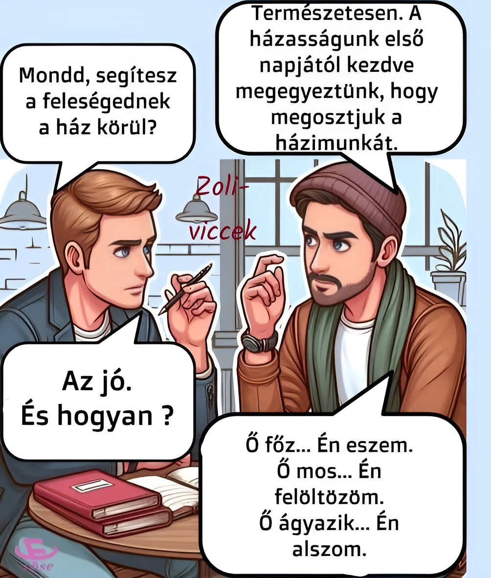 – Figyelj, Jenő, mindig hazahordod a munkádat a munkahelyedtől. Én így nem tudok tovább veled élni!